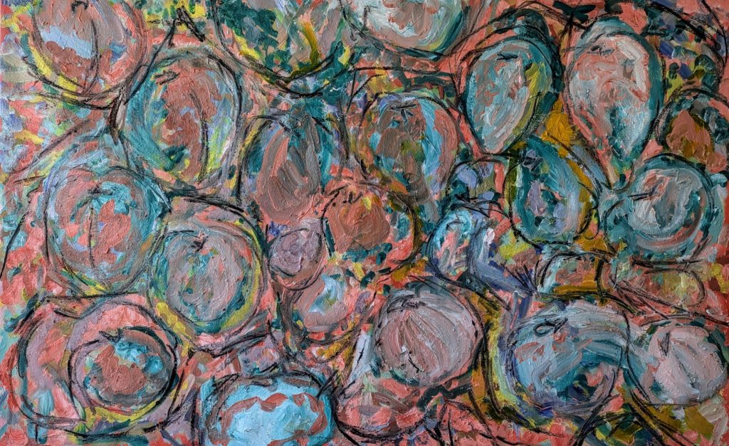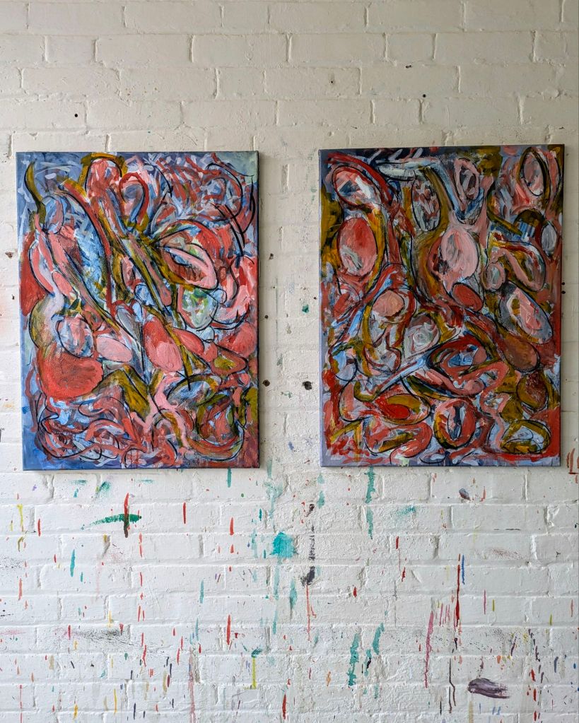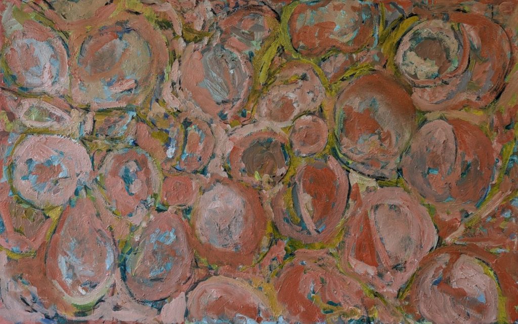 My current work in painting is further inspired by the organic and natural environment, bodily forms. processes and geometry. I am trying to satisfactorily incorporate these aspects within the painting.