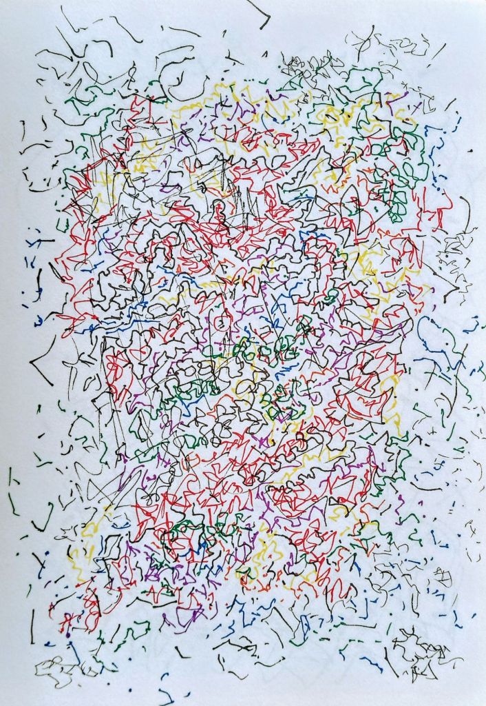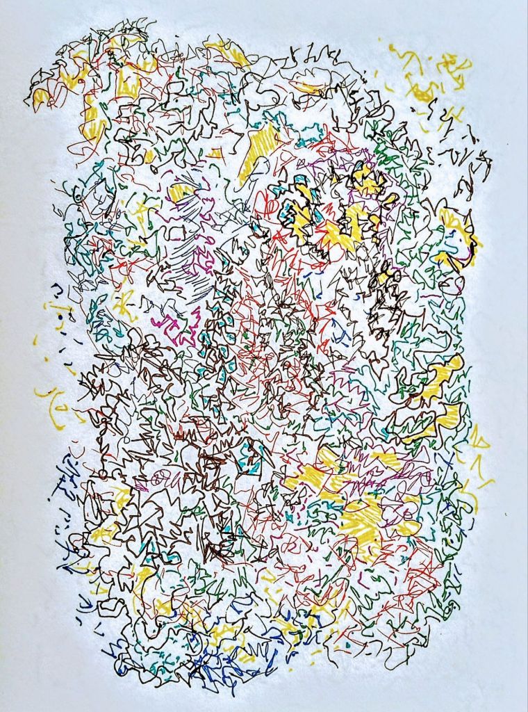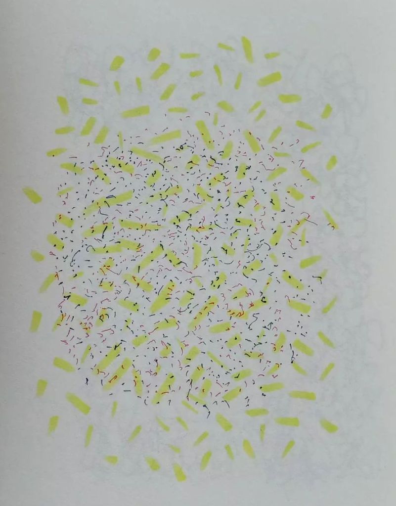 These drawings started during the early stages of lockdown like diary entries. Like an unpacking of the brain from high stimulus to less and less and the drop-off. I had COVID in the early stages so developing brain fog I think played a part.