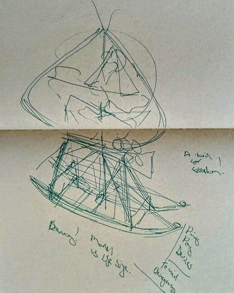 A plan for a lockdown escape-vessel of sorts. A la Beuys or Panamerenko. What would we do if we needed to escape but only had household items/materials to hand?