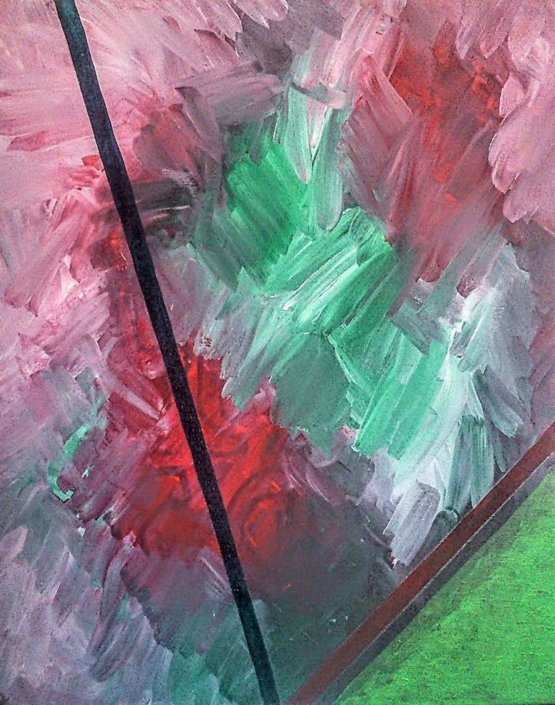 These were my first paintings after a long hiatus. Maybe 2014. I’d been writing, walking, photographing and digital drawing but I just wanted to use a substance, a material, to paint and see how that worked. These were acrylic on canvas painted on the table in the front room of the flat. We were on the second floor and I used to enjoy looking out of the window at the sky and the buildings and the angles.