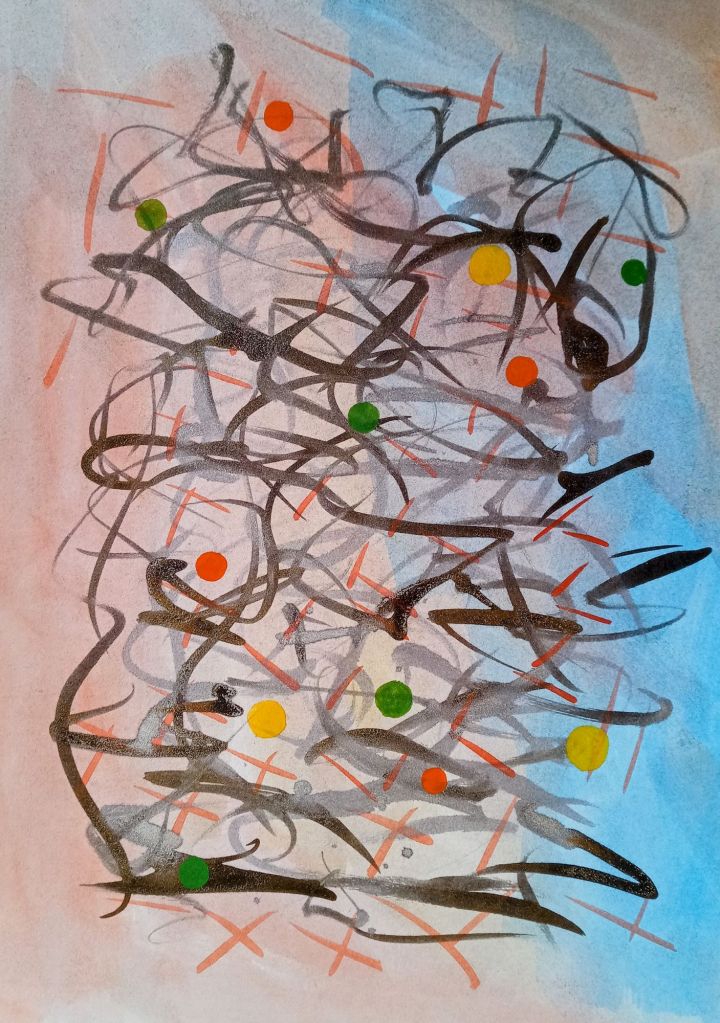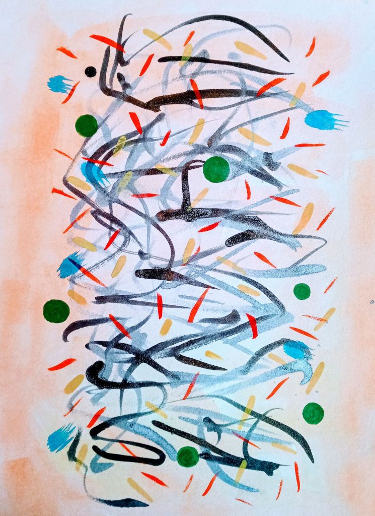 Water based paint on paper. Simple sketches, ideas, ‘freeings’. Open you up. Get you out of a trap. Fluid. Domestic.